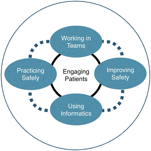 At the center of this framework is an empowered patient capable of sharing knowledge and decisions with health professionals. The framework emphasizes that safe care is delivered through teams that learn and work inter-professionally and through the utilization of information and related technology in their decisions. The framework supports the acquisition of competencies related to delivering safe care and to continuously improve care safety by all health professions.