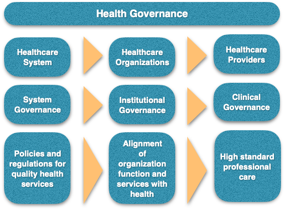 At the meso level, institutional governance is responsible for aligning healthcare organizations functions with national healthcare policies; this is done through appropriate strategic direction, organization policies, institutional risk management, executive oversight, service quality and safety.